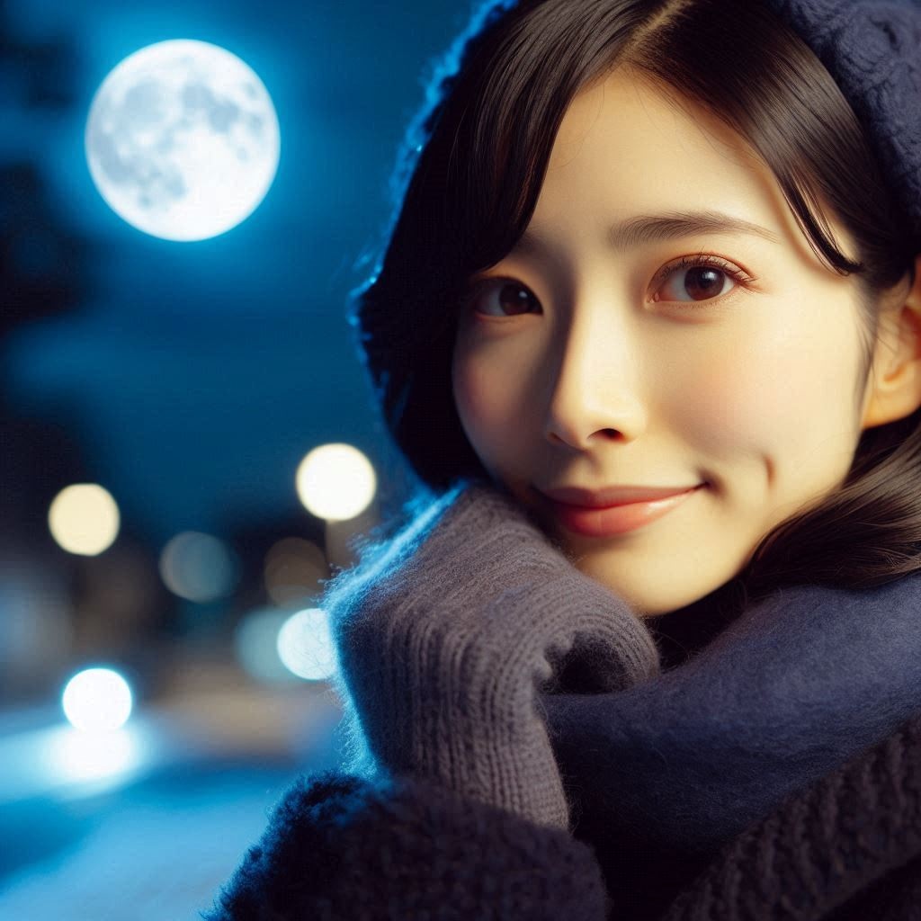 外を見たら、綺麗な、お月さんが出ていました。
